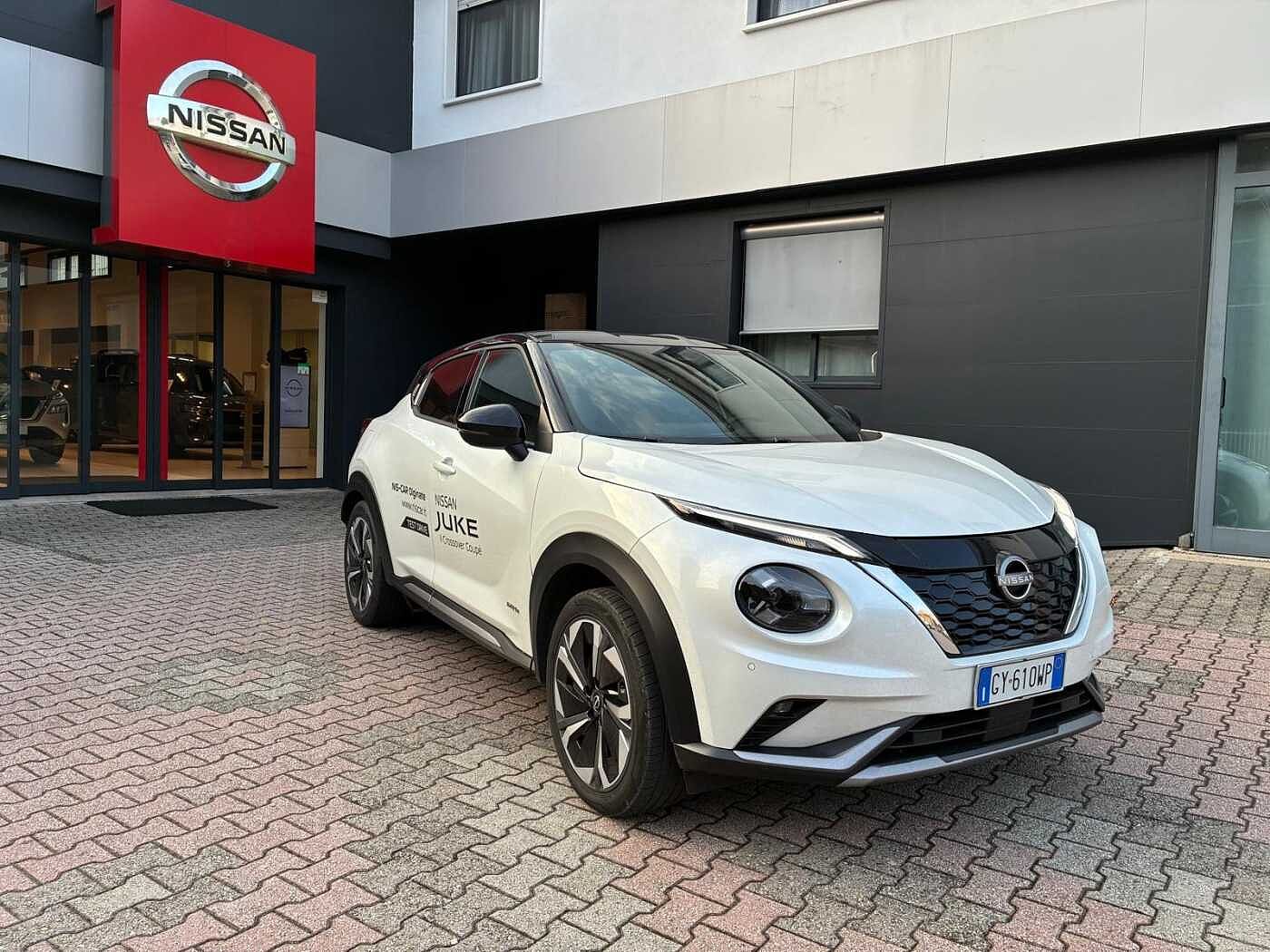 Nissan Juke HEV 1.6 Full Hybrid 143 cv allestimento N-Design, vettura aziendale immatricolata 07/2025, km 16.800, pari al nuovo, bi colore bianca con tetto nero, cerchio in lega da 19 pollici AERO, molto ben accessoriata, pronta consegna!